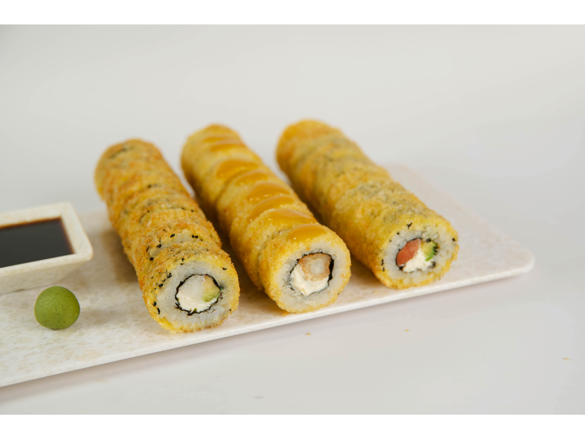 Combo hot de salmon trout y langostinos. Piezas: Hot New York Phila, Hot Futurama, Hot Shrimp.