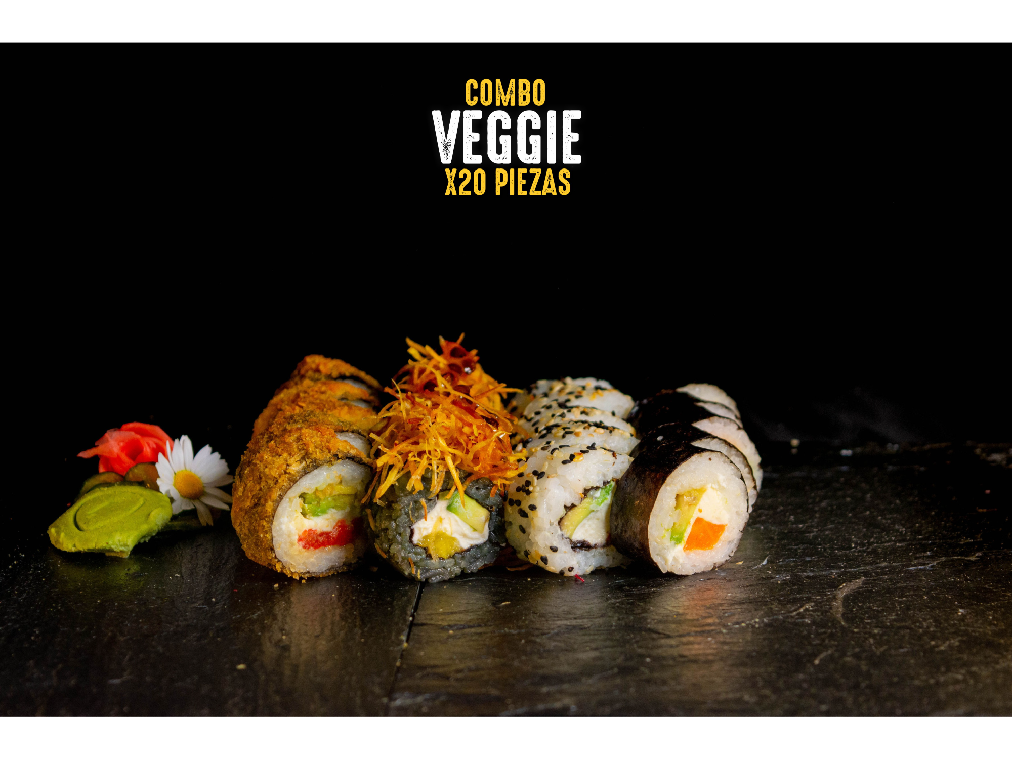 VEGGIE Presentaciones Seleccioná una opción.VEGGIE X15 15 piezas de: • Veggie crunch • Mango roll • Pepper roll $15.500VEGGIE X 20 20 piezas de:• Veggie crunch • Mango roll • Pepper roll • Maki veggie $20.500 Personalizá tu selección Las siguientes opciones aplican para cada producto agregado. Bebida Seleccioná las opciones que quieras.Lata de Coca Cola$2.500Lata Coca Cola Zero$2.500Lata de Sprite$2.500Lata de Fanta$2.500Agua mineral$2.000Coca Cola 1,5 Lt.$5.000Coca Cola Zero 1,5 Lt$5.000Sprite 1,5 Lt.$5.000Fanta 1,5 Lt.$5.000 Observaciones 0 / 150