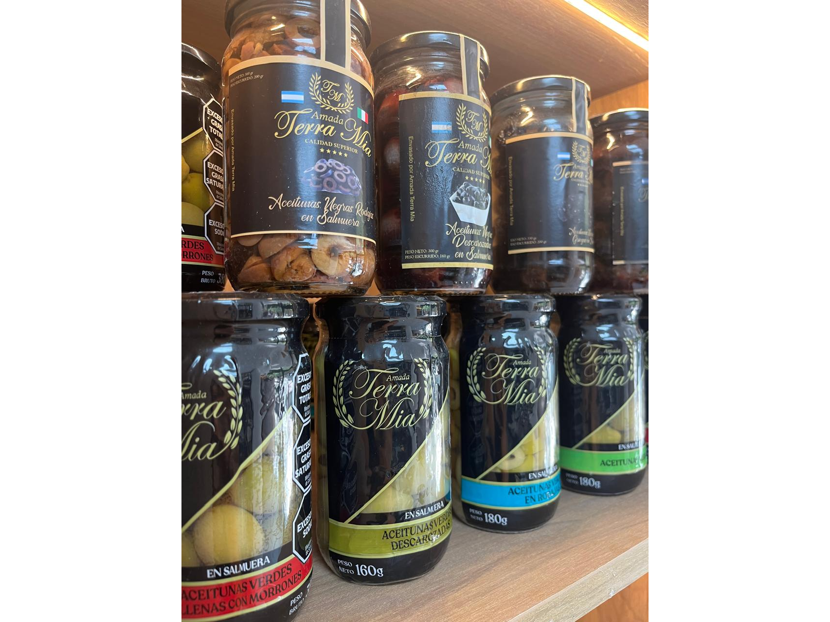 ACEITUNAS AMADA TERRA MIA: RELLENAS - EN SALMUERA - EN ACEITELas aceitunas Amada Terra Mía son conservas de oliva de origen argentino (La Rioja / Mendoza) que se destacan por su carácter gourmet y variedad en presentaciones. Presentaciones Seleccioná una opción.VERDES RELLENAS CON MORRONES 6 unidades en stock $5.900VERDES DESCAROZADAS Última unidad $5.600VERDES EN RODAJAS 4 unidades en stock $5.400VERDES C/CAROZO 2 unidades en stock $5.100NEGRAS EN RODAJAS 6 unidades en stock $5.800NEGRAS DESCAROZADAS 4 unidades en stock $7.200NEGRAS CON PARMESANO 3 unidades en stock $13.100NEGRAS GRIEGAS 5 unidades en stock $7.200NEGRAS C/CAROZO 5 unidades en stock $6.800 Observaciones 0 / 150
