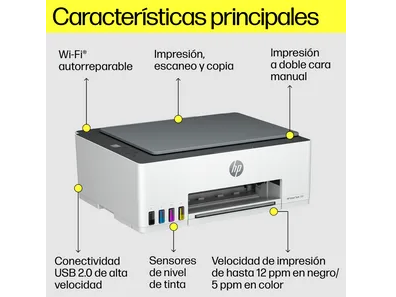 Impresión a Color Impresión, copia , escaneado 1 USB 2.0 de alta velocidad (dispositivo); 1 Wi-Fi 802.11b/g/n; 1 Wi-Fi Direct