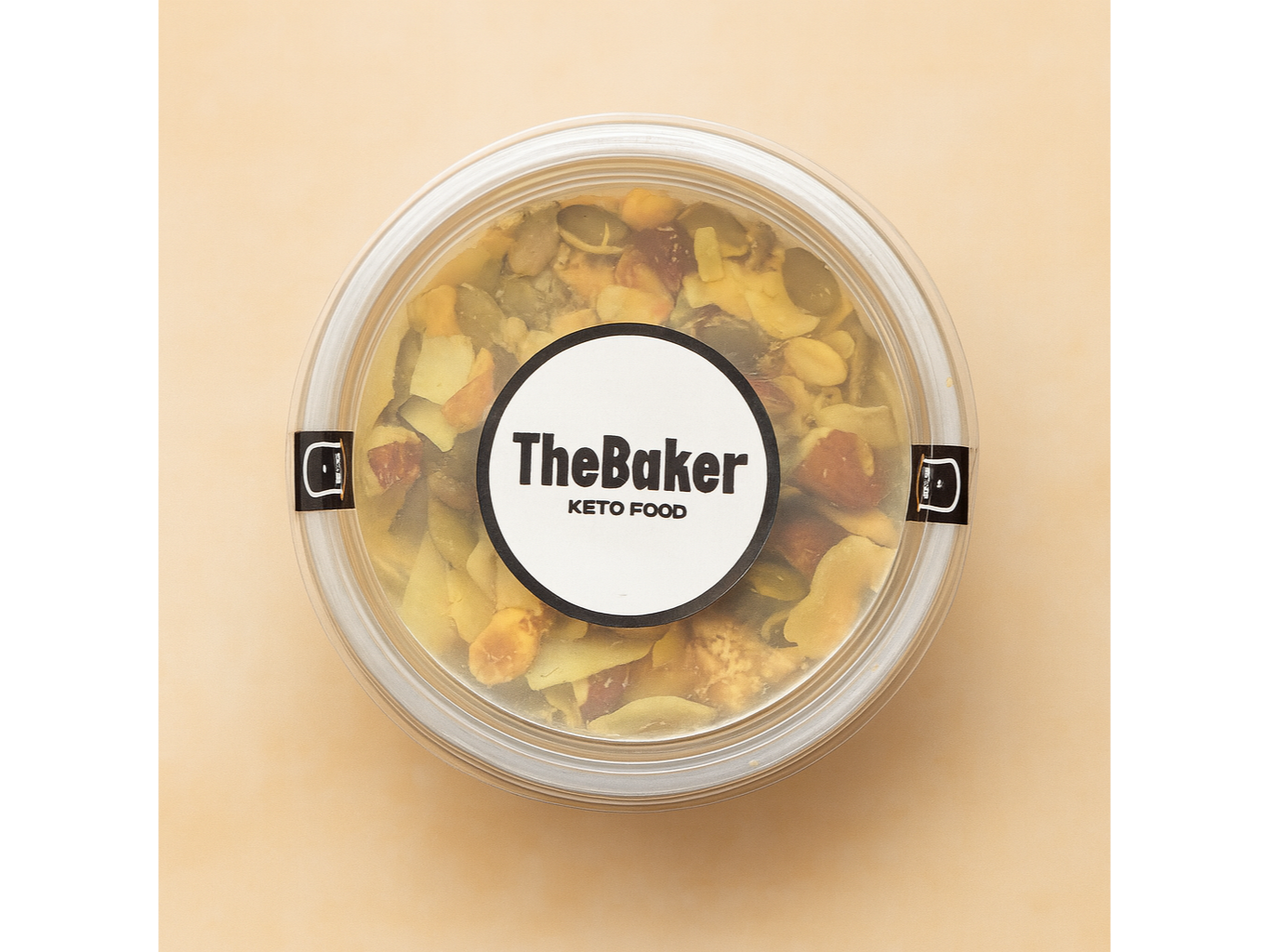 Coronando todo, nuestra granola keto artesanal, crocante, nutritiva y repleta de frutos secos y semillas tostadas.