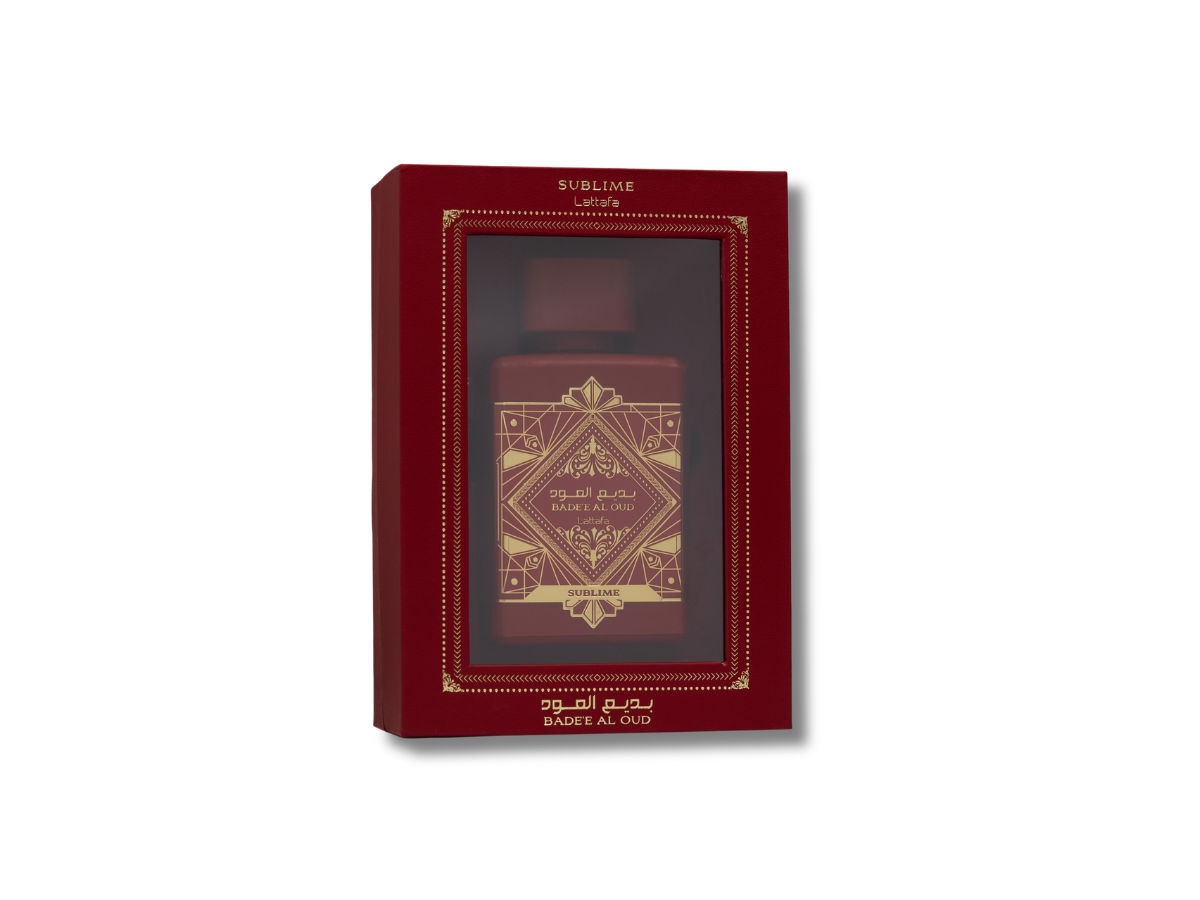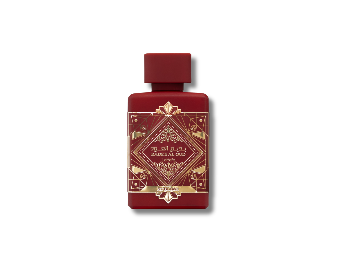 Bade'e Al Oud Sublime de Lattafa Perfumes es una fragancia aromática amaderada para mujer y hombre. Esta nueva fragancia se lanzó en 2023. Sus notas de salida son manzana, lichi y rosa; sus notas de corazón, ciruela y jazmín; y sus notas de fondo, vainilla, musgo y pachulí.