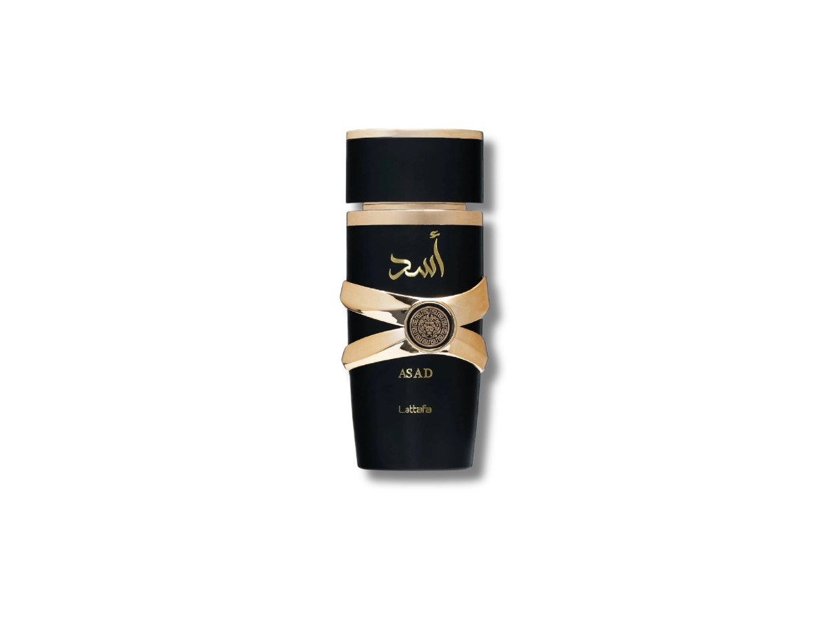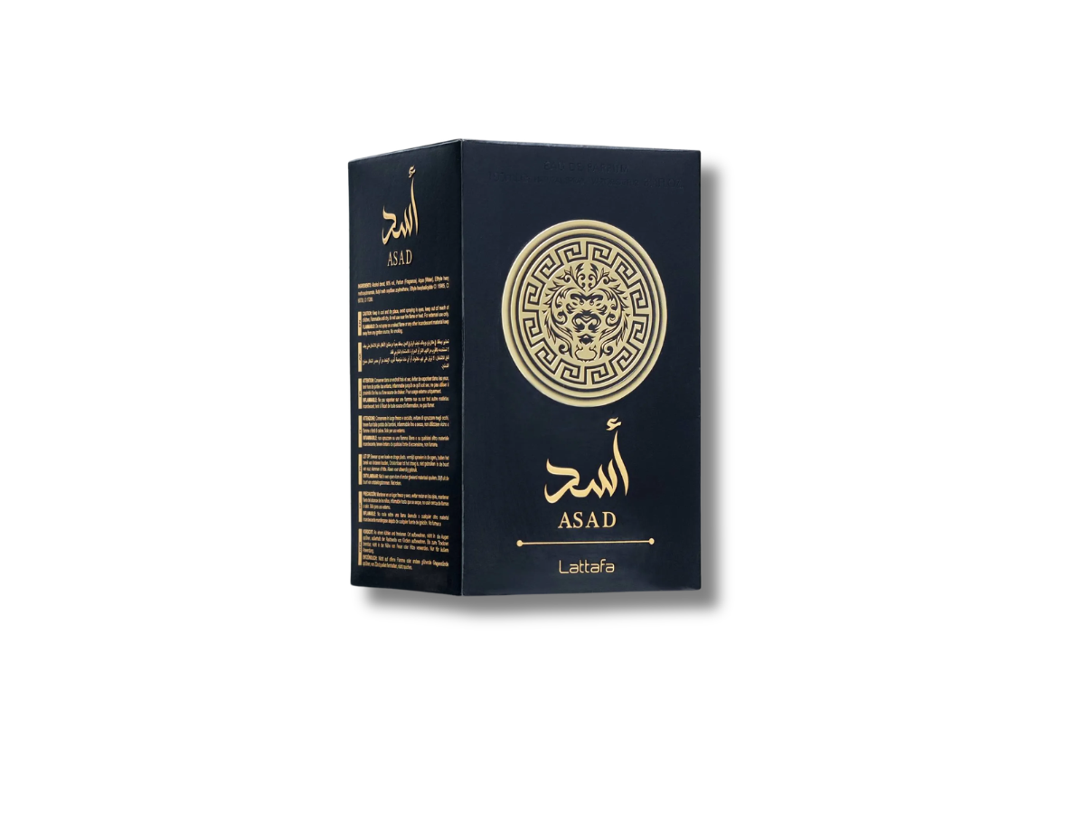 Asad de Lattafa Perfumes es una fragancia masculina de ámbar. Sus notas de salida son pimienta negra, piña y tabaco; las notas de corazón, pachulí, café e iris; y las notas de fondo, vainilla, ámbar, madera seca, benjuí y ládano.