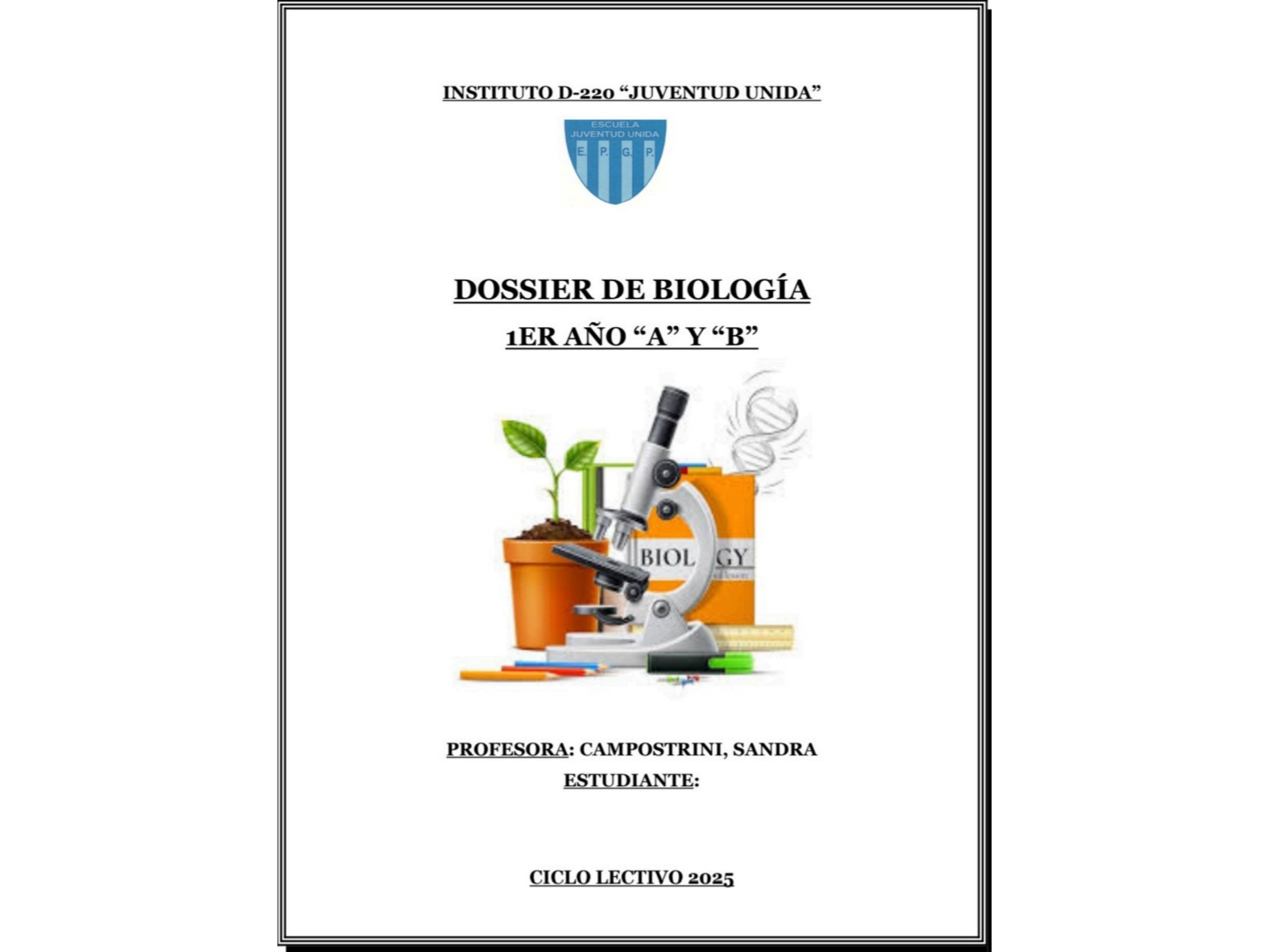 Biología - 1° AÑO - ABDossier impreso a COLOR de Biología - 1° AÑO "A y B" - Juventud Unida$8.600 Observaciones 0 / 150