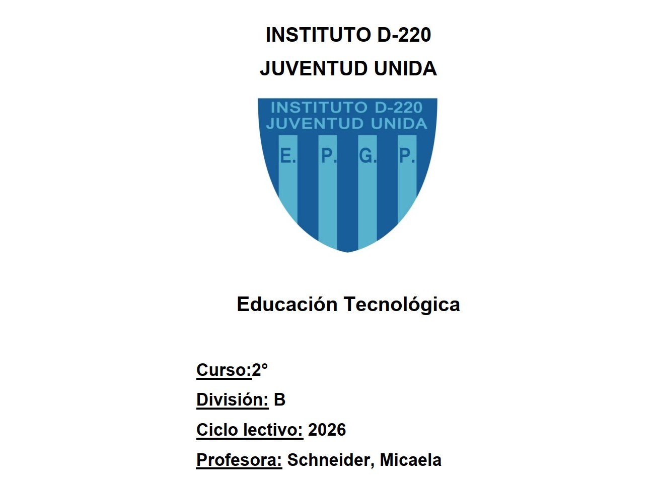 Educación Tecnológica - 2° AÑO - A Compartir por WhatsApp Copiar enlace Dossier de Educación Tecnológica - 2° AÑO - A - JUVENTUD UNIDA Presentaciones Seleccioná las opciones que quieras.COLOR Dossier impreso a COLOR $7.381NEGRO Dossier impreso en NEGRO $4.719 Observaciones 0 / 150