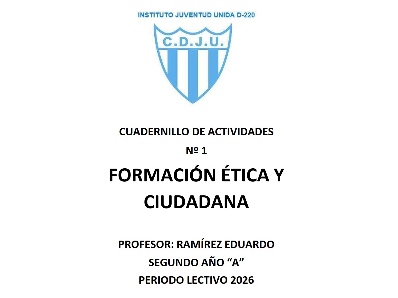 Formación Ética y Ciudadana - 2° AÑO - ADossier impreso en NEGRO (no tiene color) de Formación Ética y Ciudadana - 2° AÑO - A - Juventud Unida$5.200 Observaciones 0 / 150