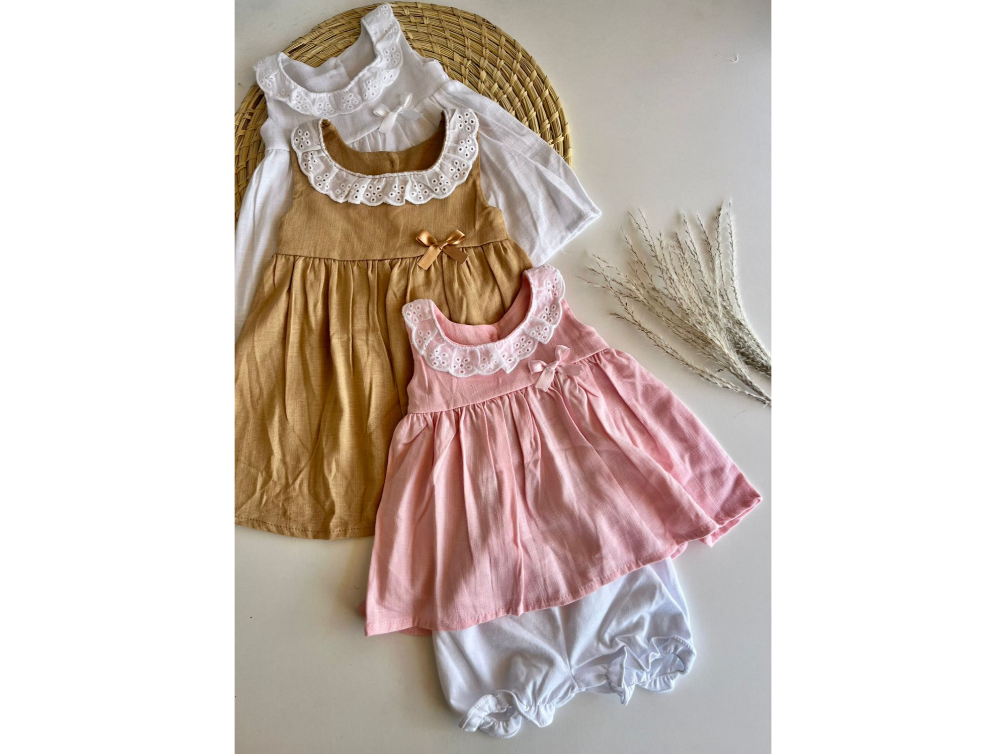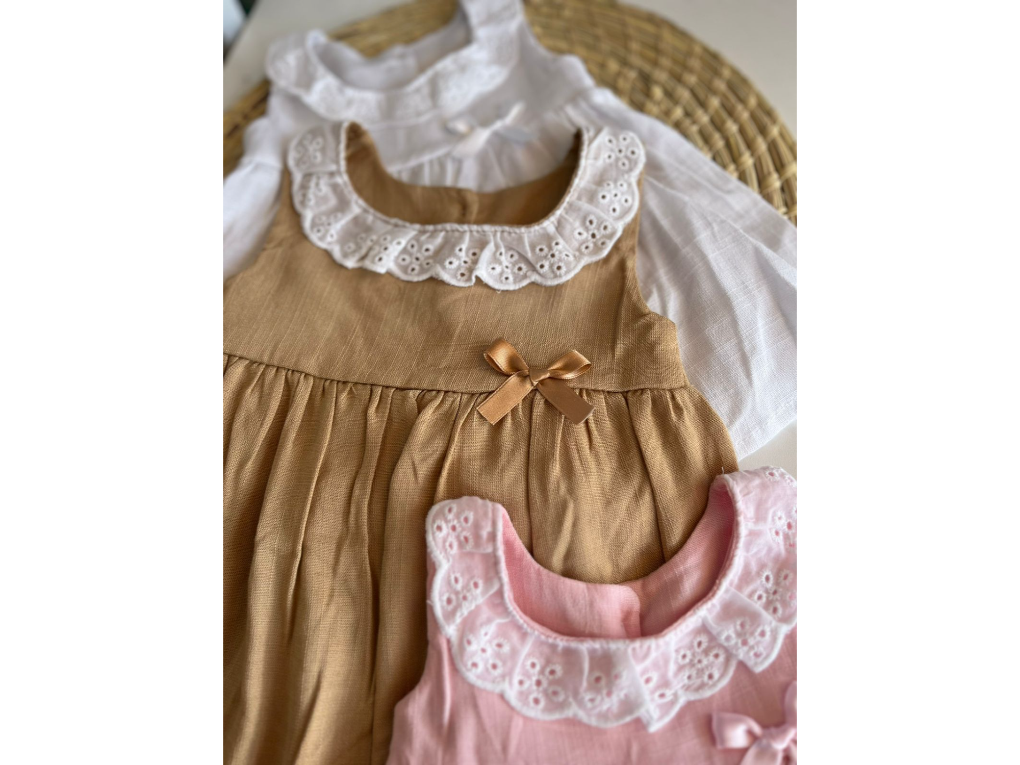 Vestido lino + bombachudo Compartir Vestido de lino con bombachudo Presentaciones Seleccioná una opción.Talle 1 color Rosa Última unidad $18.500Talle 2 color blanco Última unidad $18.500Talle 3 color rosa$18.500Talle 4 beige Última unidad $18.500 Observaciones 0 / 150