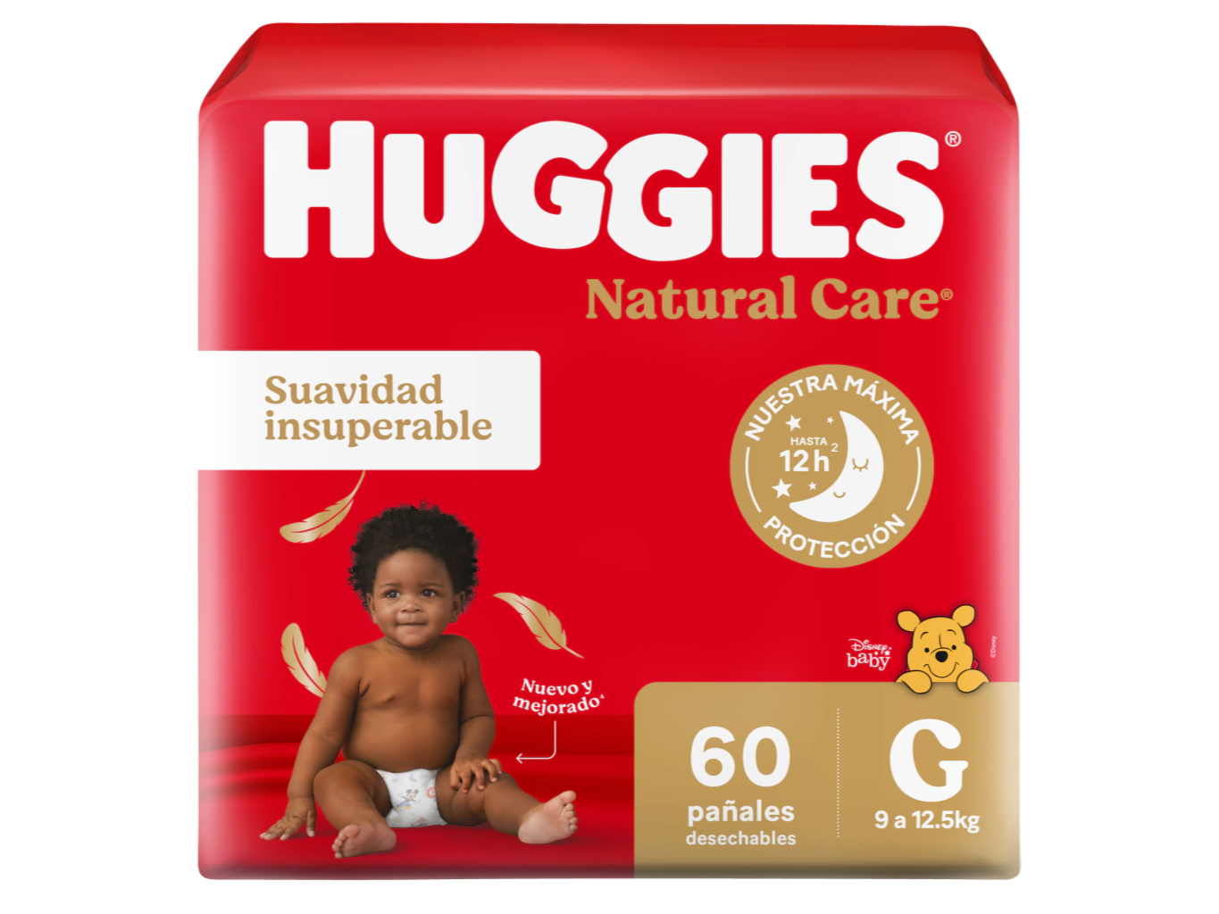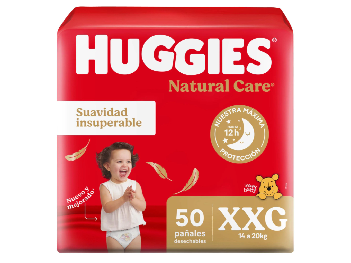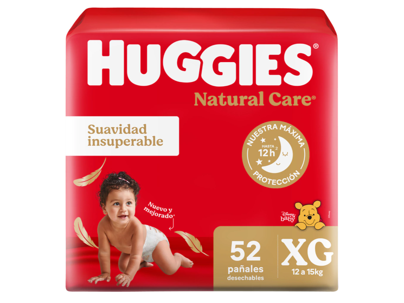 Los Pañales Huggies Natural Care son la elección perfecta para cuidar la delicada piel de tu bebé. Disponibles en todos los talles, estos pañales premium ofrecen hasta 12 horas de protección y cuentan con un sistema de absorción especial que evita filtraciones de caquita líquida.