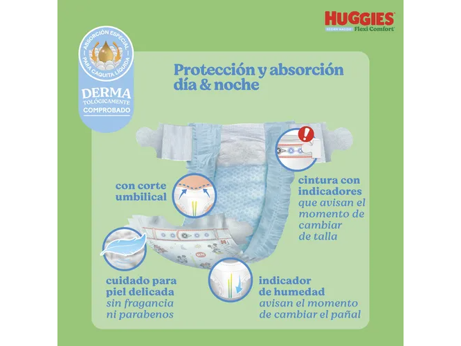 Pañales Huggies® Flexi Comfort Edición limitada le dan a tu bebé el mejor ajuste y comodidad*: se mueven naturalmente con tu bebé gracias a la tecnología Xtra-Flex: canales en forma de X que brindan una distribución del pis más rápida y mejorada. Cubierta externa suave y un sistema de ajuste flexible: Barreras, orejas y cintura elastizada. Con diseños de Simba.*vs Huggies Triple Protección