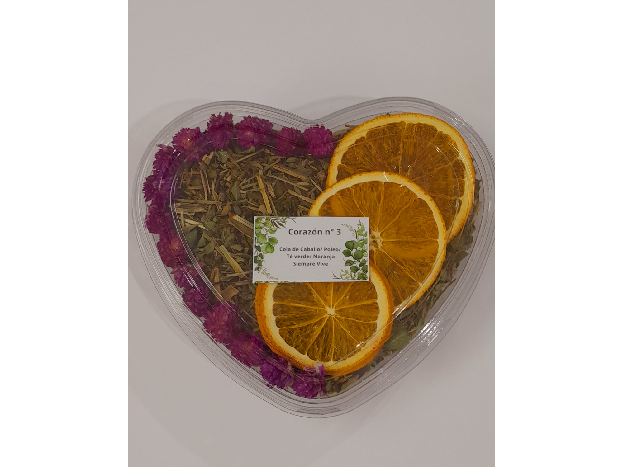 Corazón grande n°3Cola de caballo- cocú- Té verde- Rodajas de naranja- Siempre Vive$2.800 Observaciones 0 / 150