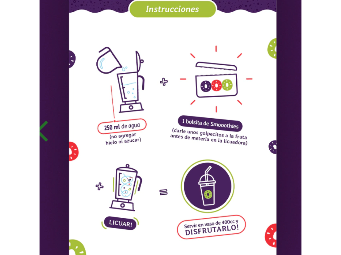 1 Caja de 14 unidades de 150 Gr (Porcion) Mezcla de Frutas Congeladas Listas para Licuar (DURAZNO, MANGO Y FRUTILLA) REMINERALIZANTE: Rico en vitaminas C y E Disfruta de una explosión de sabor con nuestra mezcla de frutas congeladas listas para licuar. Este paquete incluye 3 porciones de 150 gramos cada una, ideales para preparar deliciosos smoothies en cuestión de minutos. Simplemente agrega agua fría o leche, licúa y endulza a tu gusto. ¡Así de fácil! Estas frutas son 100% naturales y están diseñadas para ofrecerte un sabor fresco y auténtico en cada sorbo. Además, este producto es libre de gluten y sin TACC, lo que lo convierte en una opción perfecta para quienes buscan cuidar su alimentación sin sacrificar el sabor.