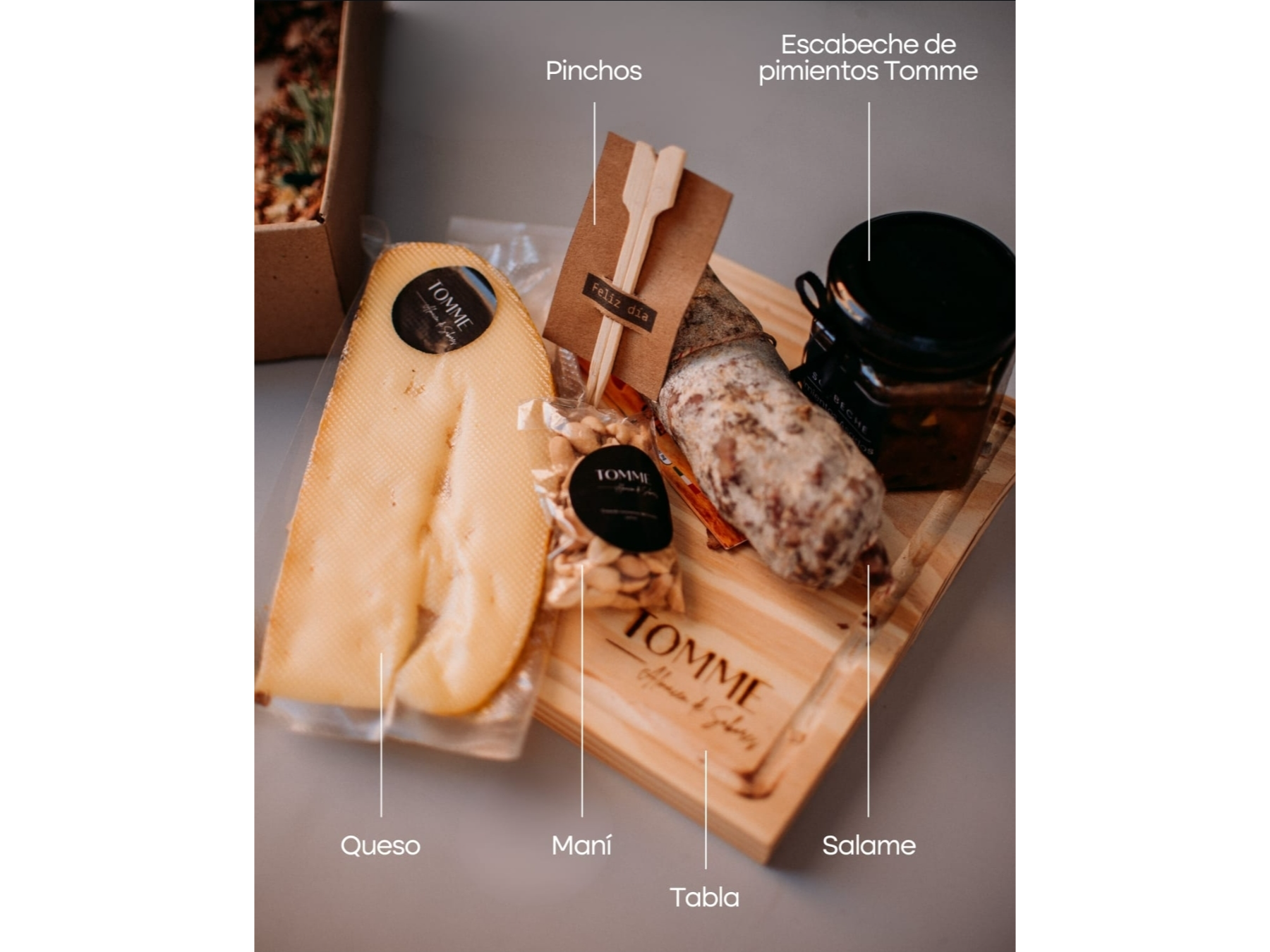 ¿Buscás sorprender con un detalle único y auténtico? El Rincón Cordobés es una experiencia gourmet que combina sabores tradicionales con una presentación elegante, ideal para regalar en cualquier ocasión especial. Incluye: Tabla de madera 20x20: perfecta para compartir y servir. Salame Regional: Don Ramón o Echeguía, reconocidos por su calidad y sabor. Queso Gruyère: 250g de este queso de sabor suave y textura cremosa. Escabeche Tomme: pimientos asados con un toque casero y delicioso. Maní: para complementar y aportar un toque crujiente. Pinchos: para facilitar el servicio y disfrutar cada bocado. Personalización disponible: Tarjeta con dedicatoria: agregá un mensaje especial para hacerlo aún más único. Video con dedicatoria QR: enviamos un código QR que dirige a un video con tu mensaje personalizado. Personalización de la tabla de madera: grabado con nombre, frase significativa o logo, creando un recuerdo inolvidable.
