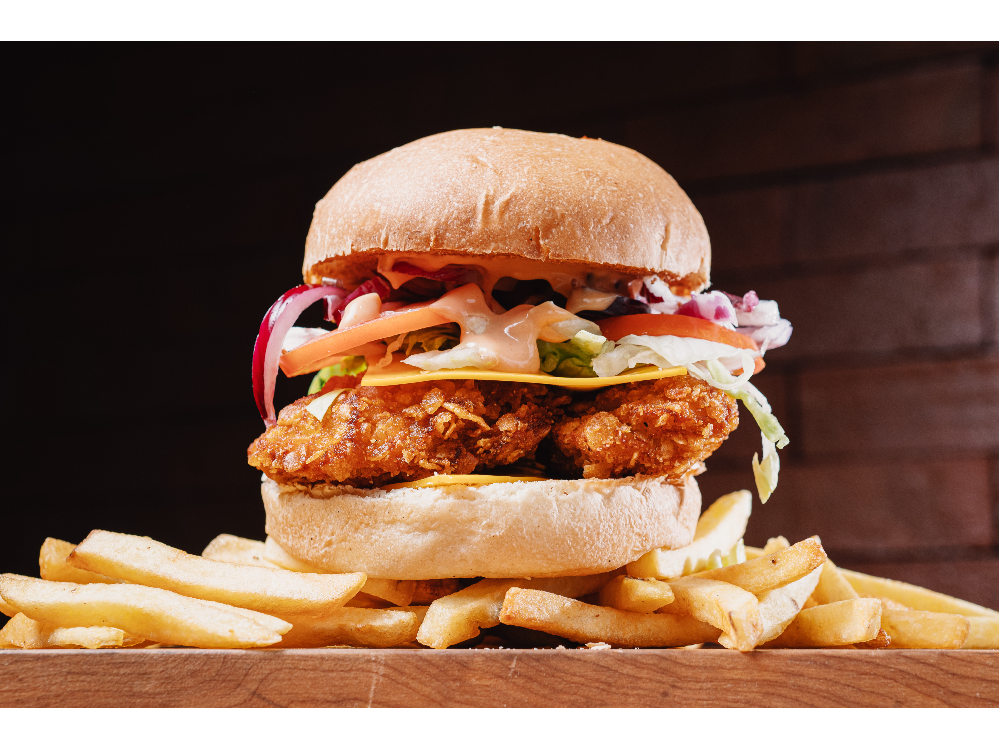 Burger American Pollo Crispy + Papas Fritas Compartir por WhatsApp Copiar enlace pan de papa, nugget de pollo, doble queso cheddar, lechuga, tomate, cebolla morada, salsa topping acompañada de papas fritas.$8.500 Complementos para tu pedido Agregá items adicionales a tu pedido. ADEREZOS Seleccioná las opciones que quieras.POTE DE CHEDDAR,BACON Y VERDEO$850POTE DE MAYO$700BBQ$700MOSTAZA$700KETCHUP$700SALSA TOPPING$700SALSA PICANTE$700CHIMI$700 Observaciones 0 / 150 Encontrá productos relacionados LINEA POLLO (6)