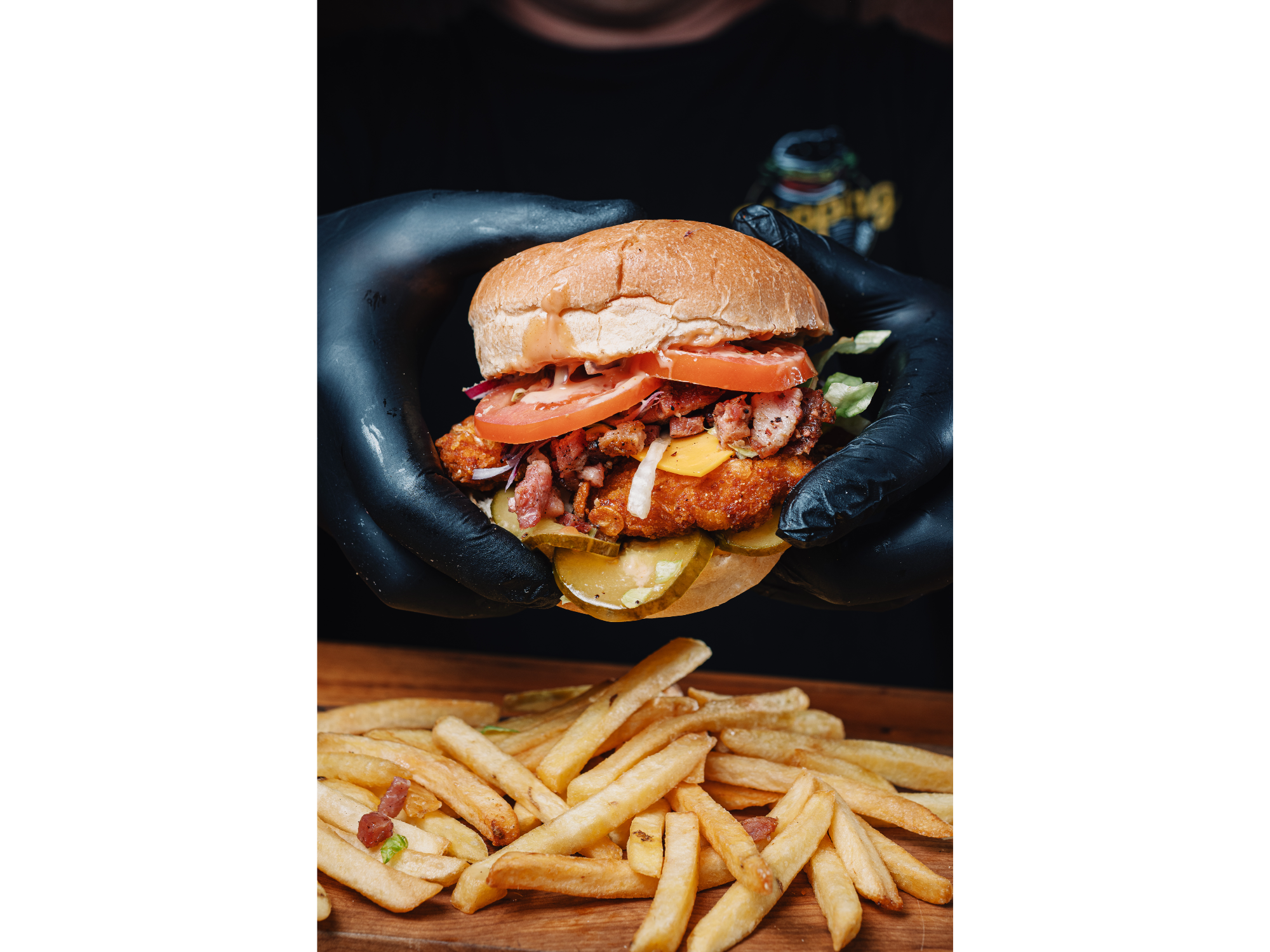 Burger Tasty Crispy + Papas Fritas Compartir por WhatsApp Copiar enlace pan de papa, nugget de pollo, doble queso cheddar, bacon, lechuga repollada, tomate, cebolla morada, pepinos y salsa topping, acompañada de papas fritas.$8.700 Complementos para tu pedido Agregá items adicionales a tu pedido. ADEREZOS Seleccioná las opciones que quieras.POTE DE CHEDDAR,BACON Y VERDEO$850POTE DE MAYO$700BBQ$700MOSTAZA$700KETCHUP$700SALSA TOPPING$700SALSA PICANTE$700CHIMI$700 Observaciones 0 / 150 Encontrá productos relacionados LINEA POLLO (6)