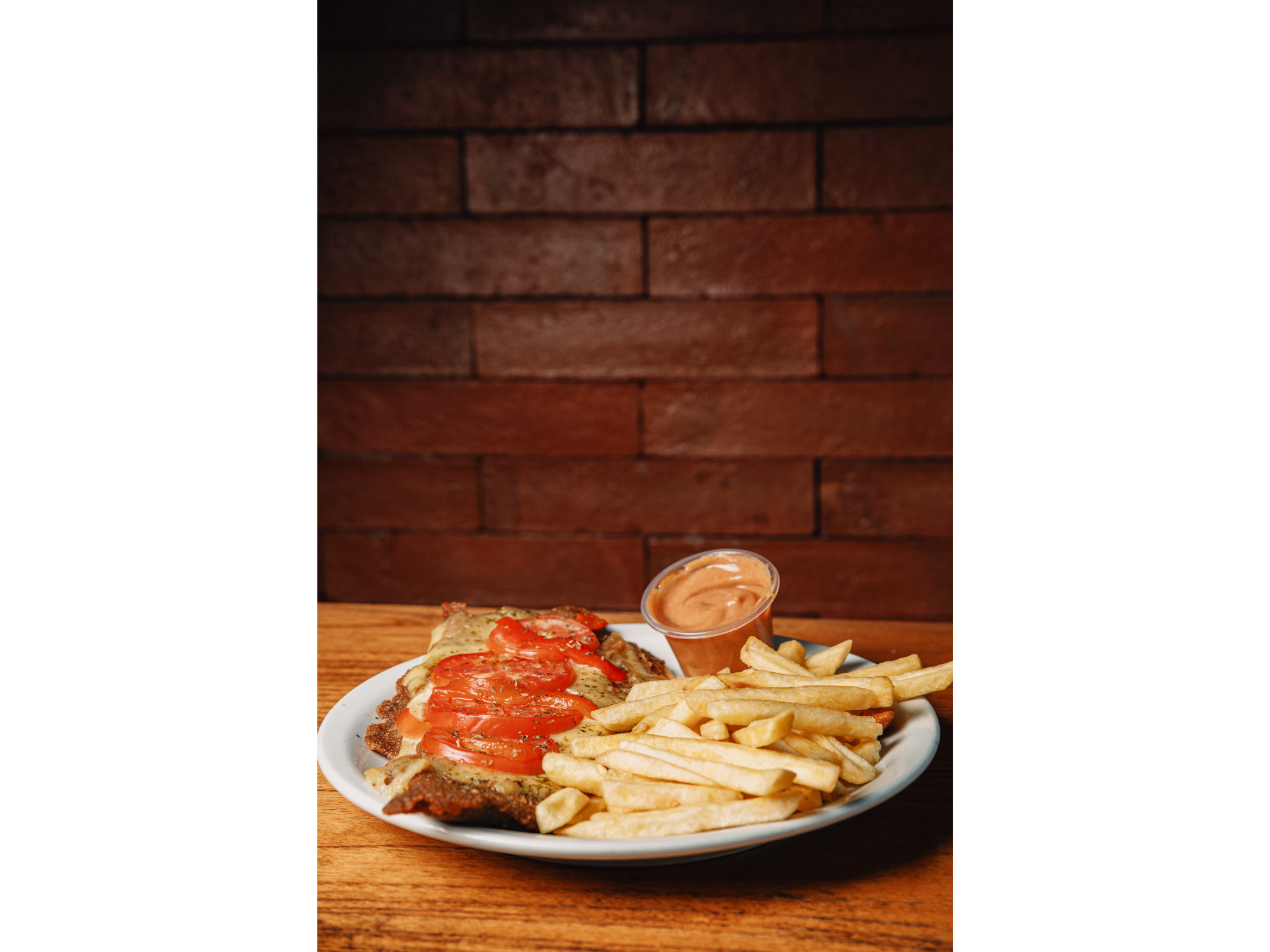 MILANESA DE CARNE O POLLO, CON PROVOLONE, MORRONES, RODAJA DE TOMATE Y OREGANO, ACOMPAÑADA DE UNA GUARNICION Y UN ADEREZO A ELECCION!