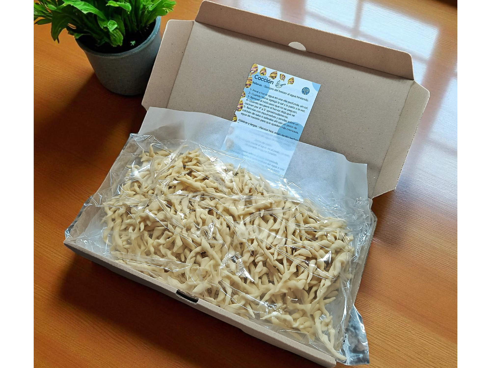 Pasta corta, con forma de caracol o tornillo, hecha a mano. Ideal para ensaladas o cremas ligeras como pesto o carbonara.