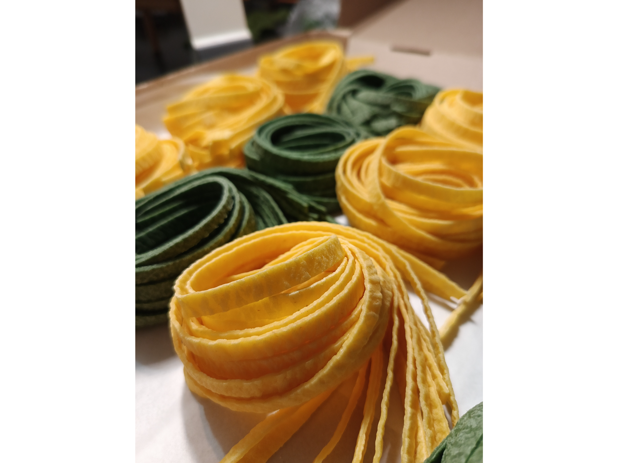 - Tagliatelle bicolor 50% pura yema y sémola y 50% pulpa de espinacas y sémola