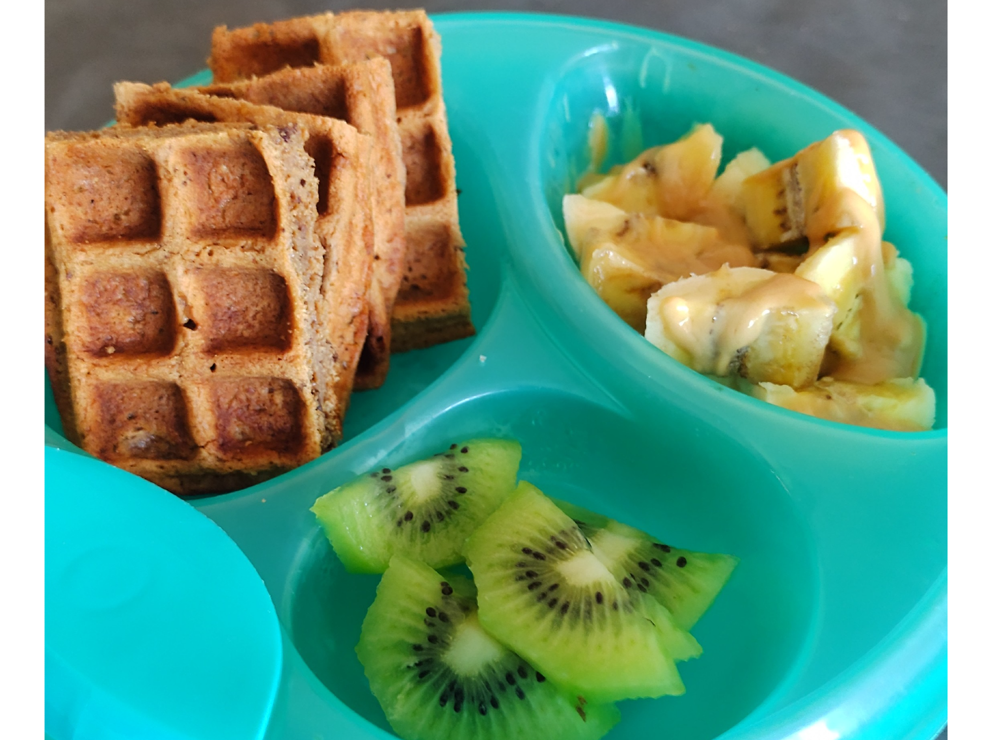 Ingredientes: Mix de harinas sin gluten (almendras, yamani y sarraceno), coco rallado, naranja, leche de coco, banana, pasta de pasas de uva, polvo de hornear. canela.