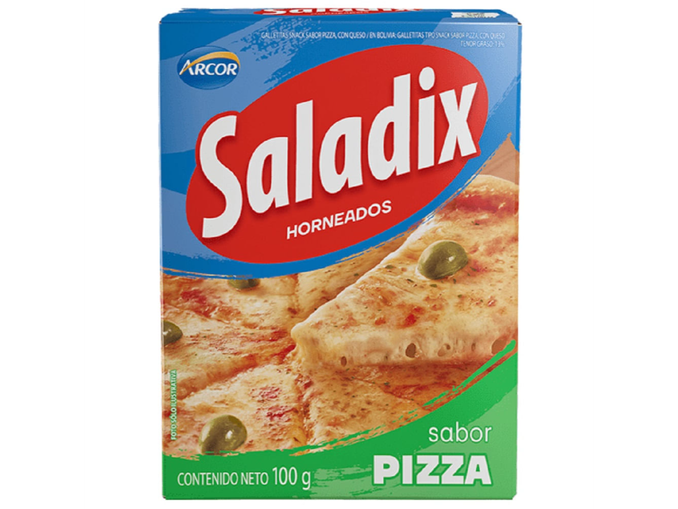 GALLETITAS SALADIX VARIEDADES Compartir por WhatsApp Copiar enlace Las Saladix son una línea de galletitas y snacks salados producidos por el Grupo Arcor en Argentina, lanzada originalmente en 1995. Se caracterizan por ser horneadas y no fritas, lo que les da una textura crocante distintiva. Presentaciones Seleccioná las opciones que quieras.PIZZA X 100GR Se caracterizan por su forma de mini pizza y un sabor intenso logrado con condimentos clásicos. $1.499JAMÓN X 100GR Reconocido por su sabor intenso y su textura crujiente. $1.499DUO JAMON Y QUESO X 80GR Combinación auténtica de jamón y queso. $1.499CALABRESA X 100GR Las Saladix sabor Calabresa son una de las variedades más populares de la línea de snacks horneados de Arcor. Se caracterizan por su sabor intenso a embutido ahumado y su textura crujiente. $1.499 Observaciones 0 / 150