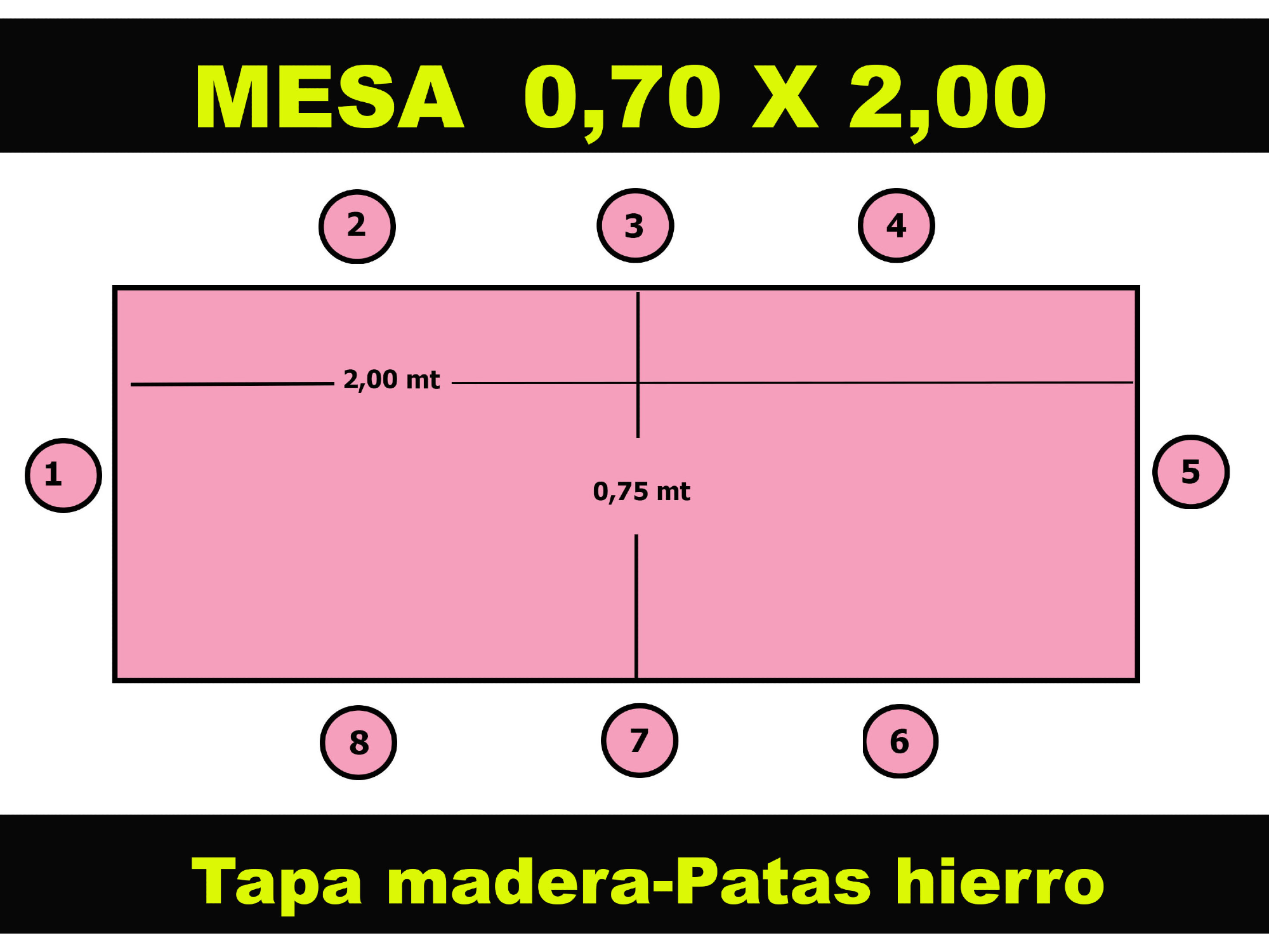 Mesa Rectangular Compartir por WhatsApp Copiar enlace Mesa Rectangular 0,70 x 2,00 tapa madera, base hierro$10.000 Observaciones 0 / 150