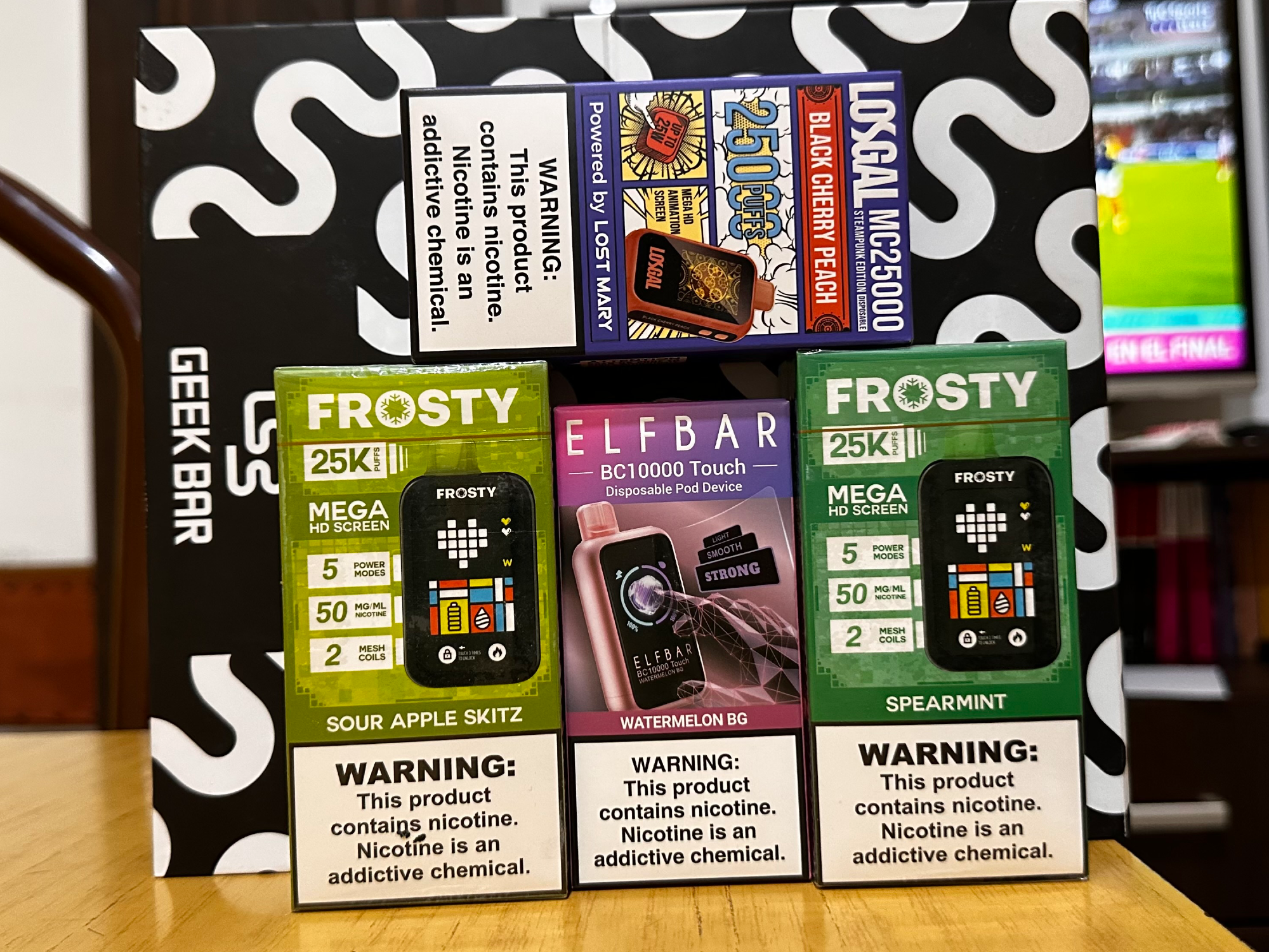 Promos Compartir por WhatsApp Copiar enlace STOCK DESCARTABLES STOCK RECARGABLES LÍQUIDOS STOCK DESCARTABLES (8) UNIDADES SUELTAS desde $15.000 Hasta 45% OFF ELFBAR BC 15K PUFF desde $20.000 Hasta 9% OFF IGNITE 15K PUFF desde $22.000 Hasta 12% OFF LOST MARY DURA 35K puff desde $34.000 Hasta 21% OFF ELFBAR ICE KING 40K PUFF desde $36.000 Hasta 20% OFF IGNITE 40K PUFF desde $38.000 Hasta 16% OFF MASKING EXTRE 100K PUFF desde $40.000 Hasta 38% OFF Sin stock ELFBAR TRIO 40K PUFF desde $40.000 Hasta 9% OFF STOCK RECARGABLES (7) VINCI Q + ZOMO $49.000$40.000 18% OFF KOKO PRIME + ZOMO $68.000$45.000 34% OFF ARGUS Z2 + ZOMO $62.000$50.000 19% OFF VAPE PEN V2 + ZOMO $79.000$55.000 30% OFF ECO NANO 2 + ZOMO $73.000$60.000 18% OFF XROS MINI $68.000$65.000 4% OFF LUXE Q2 + ZOMO $86.000$70.000 19% OFF LÍQUIDOS (1) NASTY 60ml 3mg (POCAS UNIDADES) desde $15.000 Hasta 32% OFF