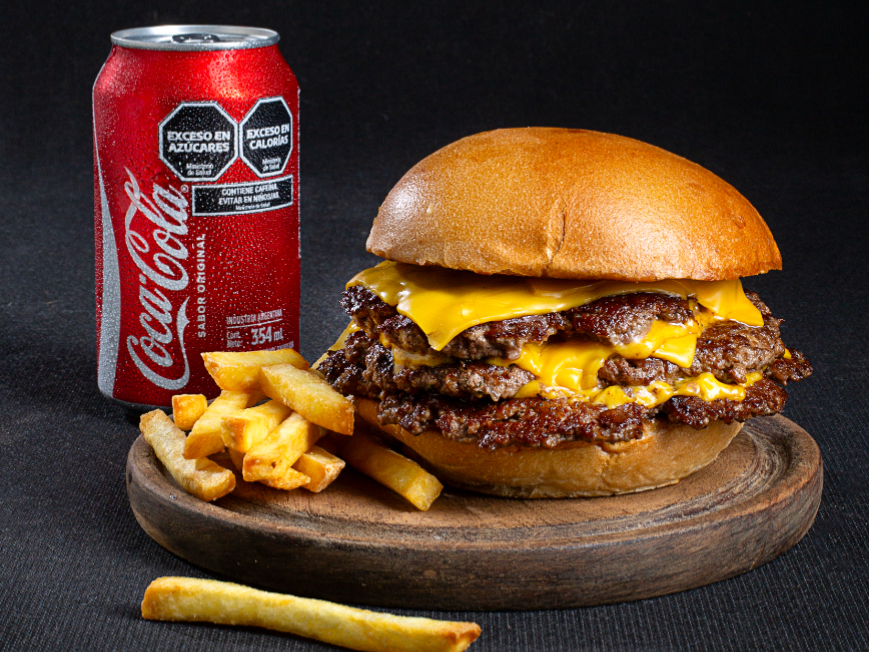 CHESSE BURGERPan de papa + 1 medallón de 100gr + queso cheddar + barbacoa. Presentaciones Seleccioná las opciones que quieras.Cheese burger simple Pan de papa + 1 medallón de 100gr + doble queso cheddar + mayonesa Sin stock $7.000Cheese burger doble Pan de papa + 2 medallones de 100gr + cuádruple queso cheddar + mayonesa . $9.000Chesse burger triple Pan de papa + 3 medallones de 100gr + sextuple queso cheddar + mayonesa . $11.000 Observaciones 0 / 150