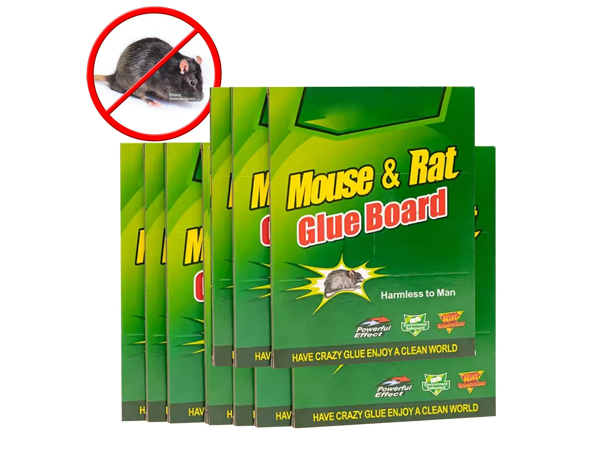 Pegamento para ratones y ratas. Sus características principales son: Utiliza un adhesivo fuerte y uniformemente distribuido para capturar plagas. El diseño suele ser de cartón o plástico recubierto con pegamento y a menudo es plegable. No contiene tóxicos, lo que lo hace una opción para interiores. Es efectivo para capturar ratones, ratas y otros insectos como cucarachas o escorpiones. Una vez colocada, la trampa puede durar entre 2 y 3 meses en condiciones ideales.