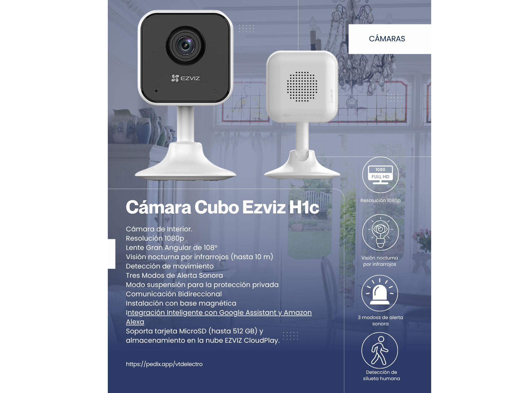 Soporta tarjeta MicroSD (hasta 512 GB) y almacenamiento en la nube EZVIZ CloudPlay.