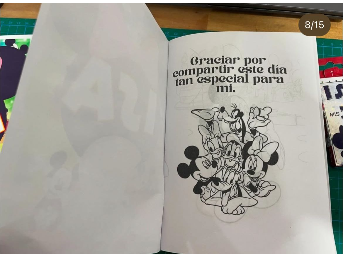 - Realizado en papel Fotográfico para la tapa y contratapa y papel común para pintar