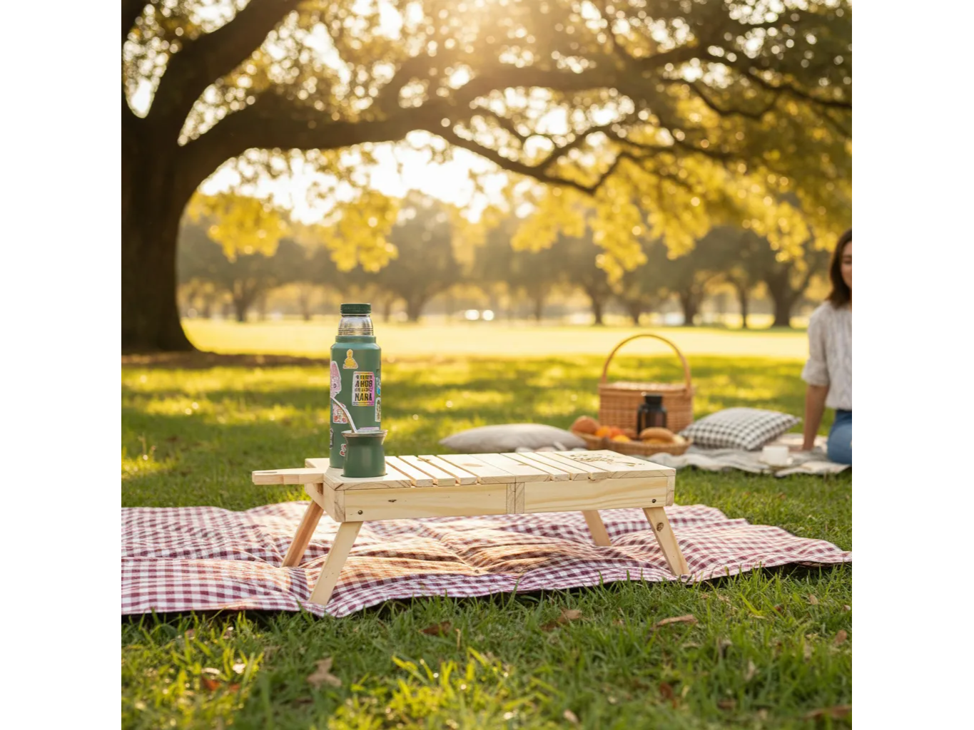 Cuenta con dos agujeros que sirve para colocar el termo y mate o tambien puede colocar una botella de cerveza y un chopp sin problema.