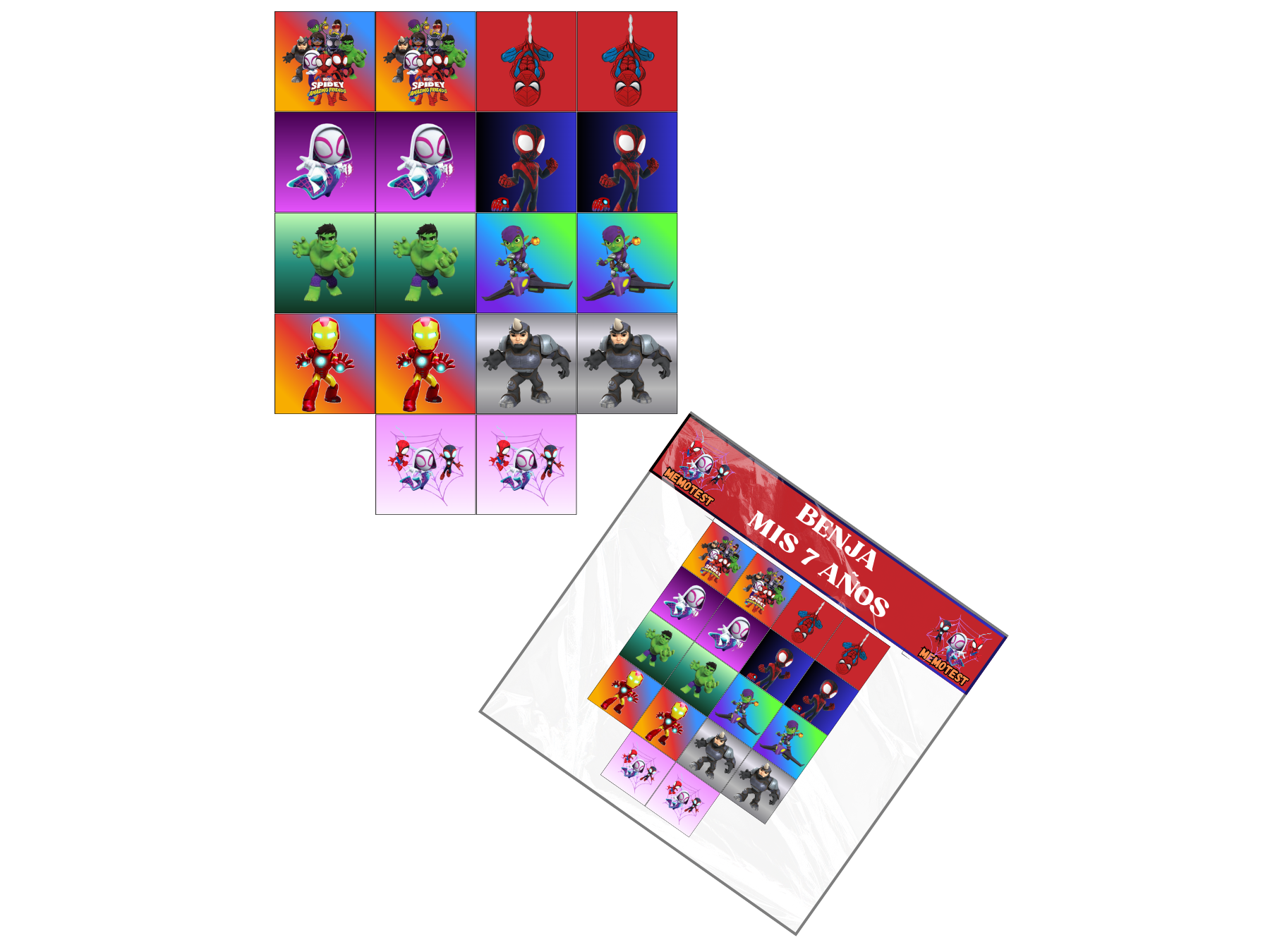 - Incluye 18 Fichas cuadradas 5cm x 5cm aproximadamente