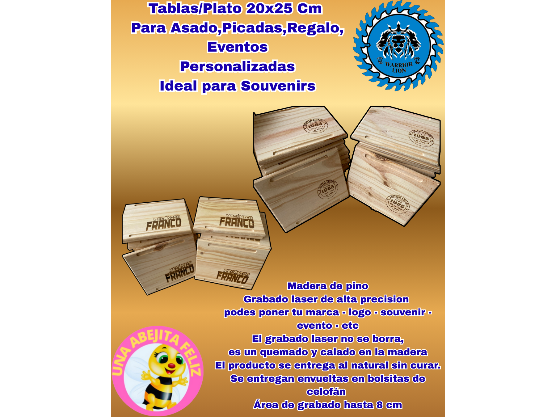 El grabado laser no se borra, es un quemado y calado en la madera