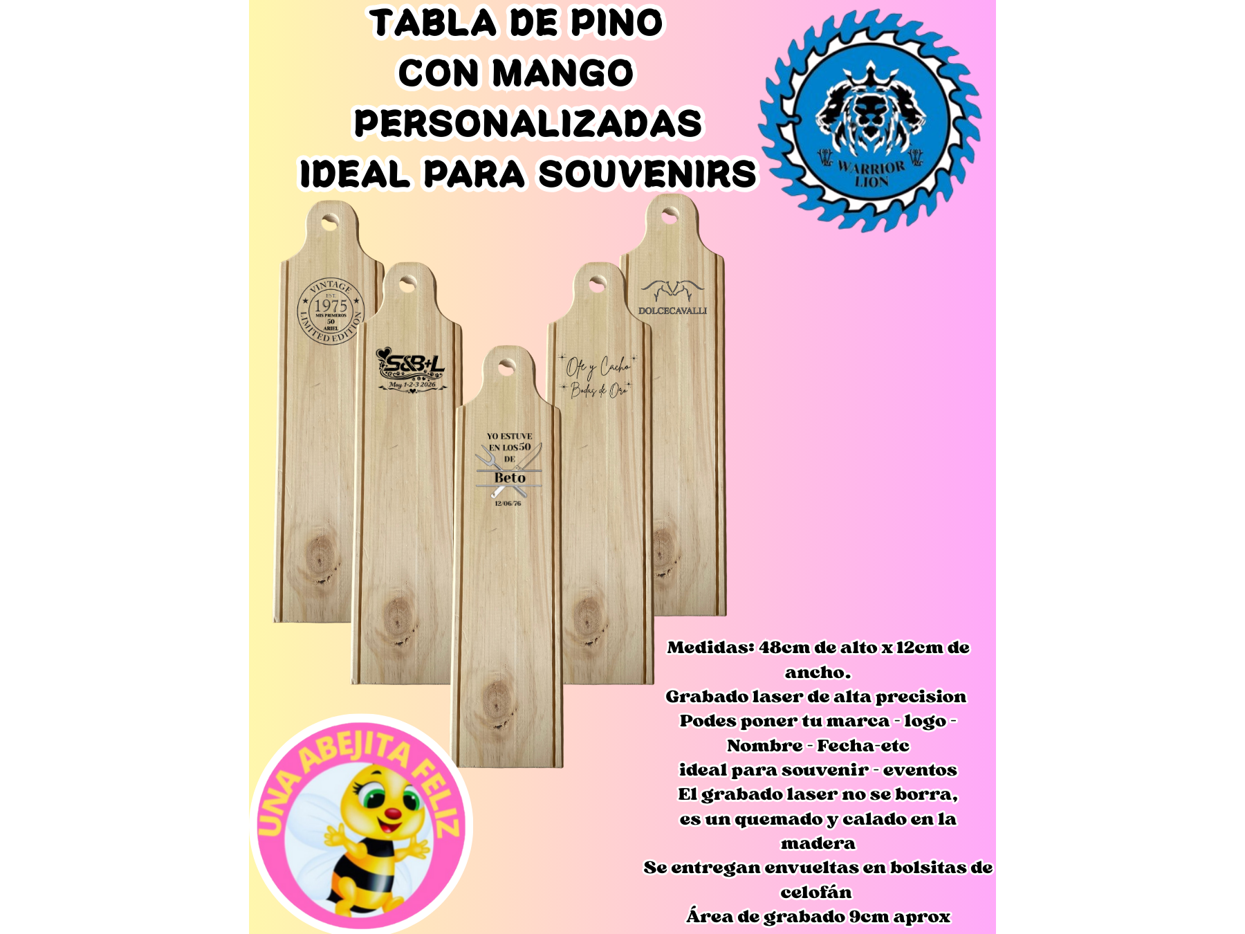 Tabla de Pino con Mango Personalizadas