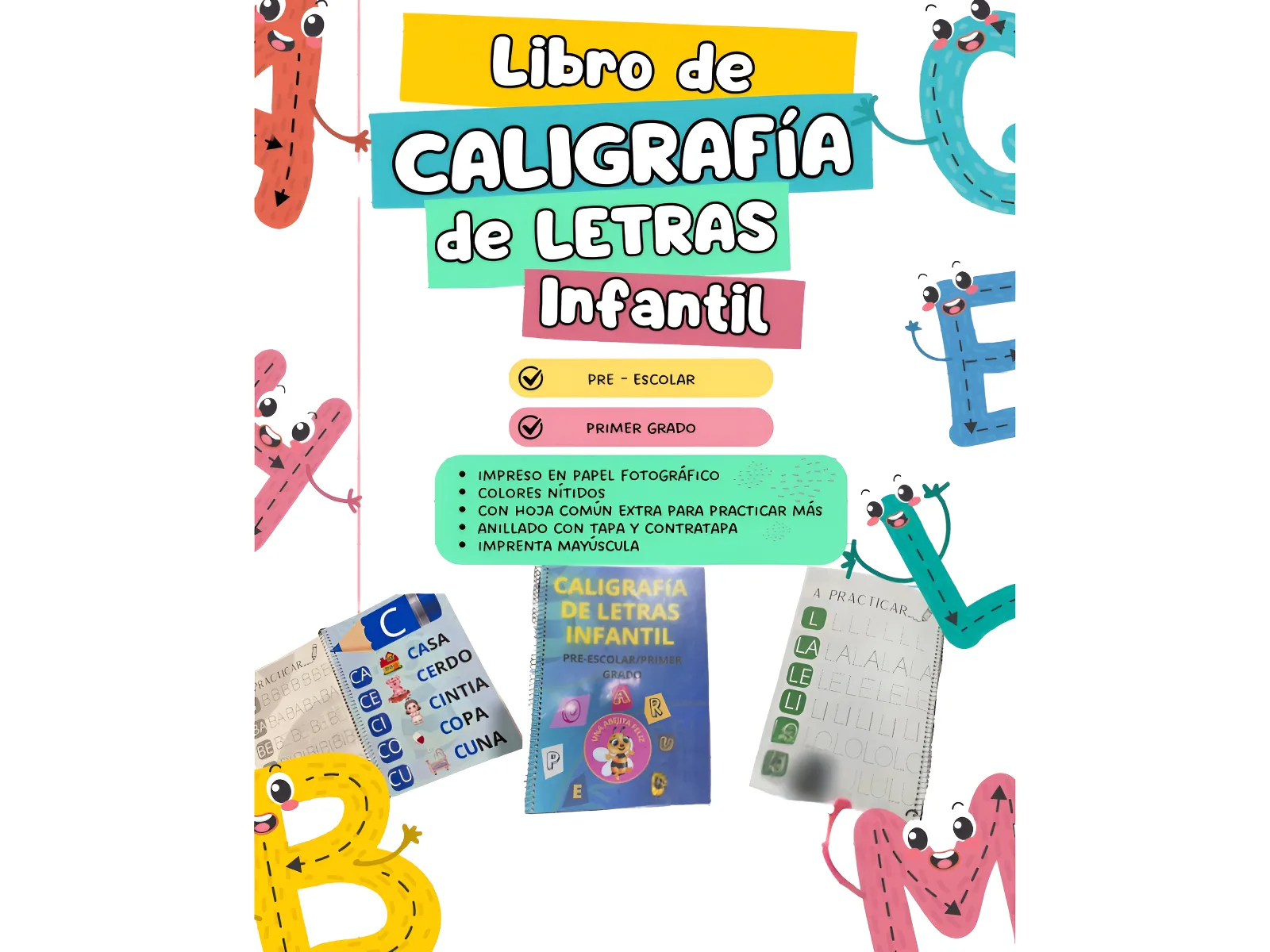 Libro De Caligrafia De Letras Infantil Compartir por WhatsApp Copiar enlace LIBRO DE CALIGRAFIA DE LETRAS INFANTIL !!! Pre escolar / Primer Grado Impreso en papel fotografico , colores nitidos , con hoja comun extra para practicar mas, anillado con tapa y contratapa , imprenta mayuscula$22.000 Observaciones 0 / 150