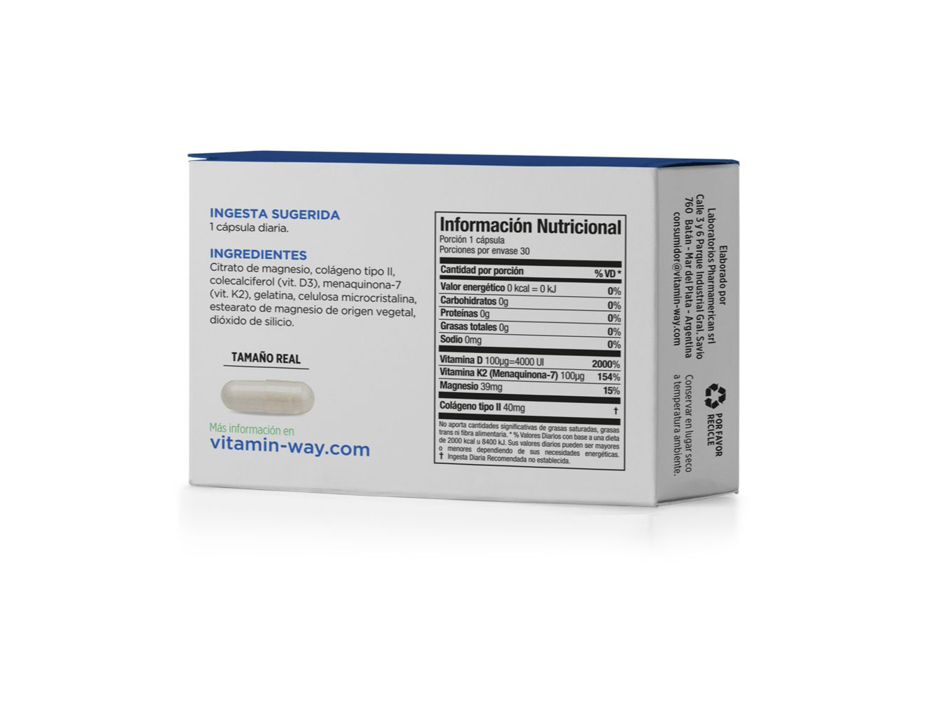 Elaborado con fuentes de vitamina K2 y Magnesio con elevada biodisponibilidad.