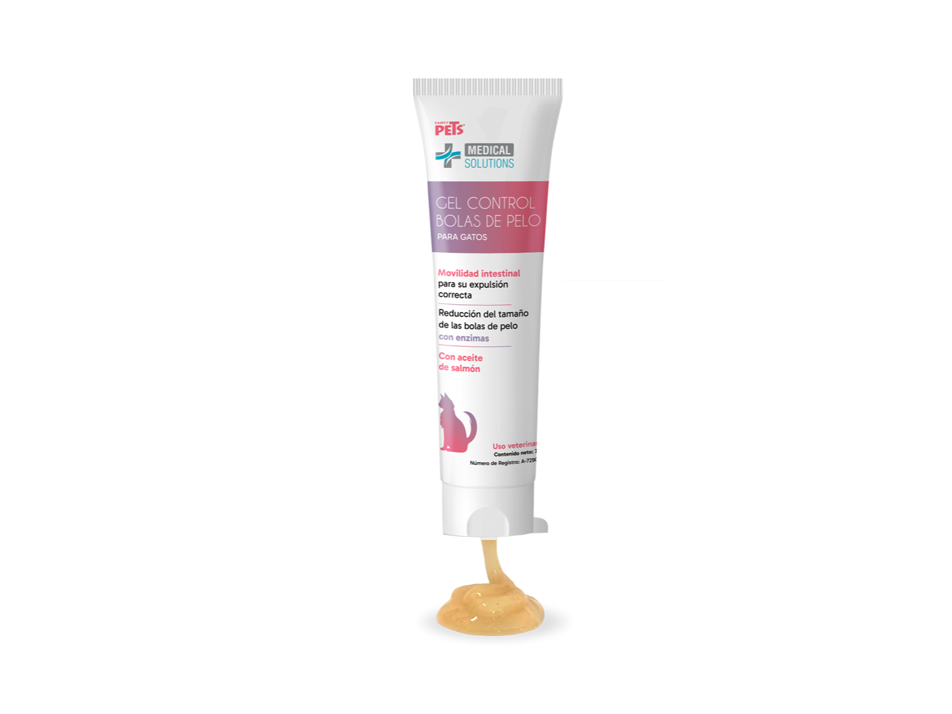 El gel Fancy Pets® Medical Solutions para el control de bolas de pelo en gatos es una solución efectiva y segura para prevenir y eliminar las molestas bolas de pelo que se forman en el tracto digestivo de los felinos. Su formula avanzada combina aceite de salmón, rico en ácidos grasos esenciales que favorecen una piel saludable y un pelaje brillante, ayudando a reducir la caída de pelo y, con ello, la formación de bolas de pelo. Además, contiene fibra soluble (psyllium plantago) que promueve el tránsito intestinal, facilitando la eliminación natural de las bolas de pelo. Está enriquecido con enzimas naturales como la papaína y la bromelia, que contribuyen a degradar las acumulaciones de pelo en el estómago e intestinos, reduciendo las molestias y riesgos asociados. Da sabor agradable y textura suave, este gel es fácil de administrar y se convierte un aliado ideal para el bienestar digestivo y la salud general del gato.
