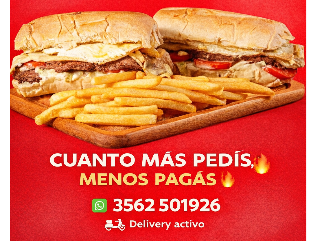 🥩 Lomitos y mas! Compartir por WhatsApp Copiar enlace 🍔 LOMO LOMO 🔥 HOY PROMO ESPECIAL desde $15.500 🔥 LOMO PRENSADO – SOLO HOY 🔥 desde $14.000 Lomo Clásico de la Casa desde $13.500 🔥 Lomito Parrillero desde $13.500 Lomito del Bajón $17.000 Milanesa Clasica Ternera $14.500 Milanesa clasica Pollo $14.000